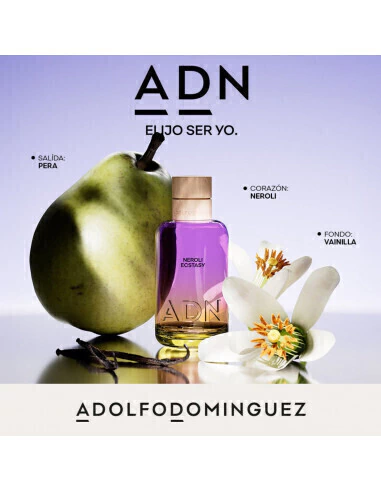 Neroli Ecstasy de Adolfo Dominguez es una fragancia de la familia olfativa para Mujeres. Esta fragrancia es nueva. Neroli Ecstasy se lanzó en 2025. La Nota de Salida es pera; la Nota de Corazón es neroli; la Nota de Fondo es vainilla.