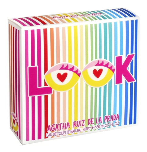 Look de Agatha Ruiz de la Prada es una fragancia de la familia olfativa Oriental Floral para Mujeres. Look se lanzó en 2021. Las Notas de Salida son toronja (pomelo), pimienta rosa, grosellas negras y manzana roja; las Notas de Corazón son cacao, haba tonka, flor de azahar del naranjo y jazmín; las Notas de Fondo son vainilla, pachulí, ámbar, benjuí y almizcle.
