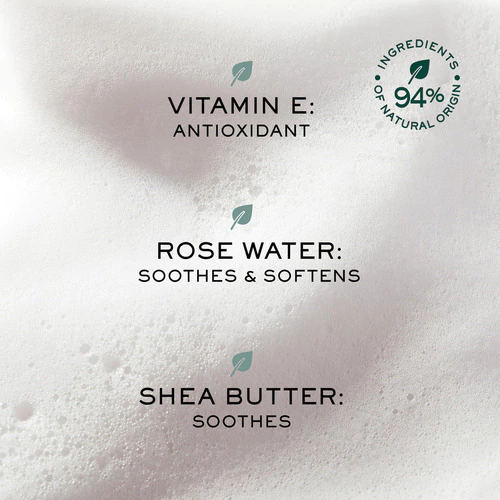 Enriquecida con un extracto de rosa, contiene un 95 % de ingredientes de origen natural. Su fragancia con delicadas notas de rosa y su textura ultra-ligera envuelven la piel en una nube de suavidad.